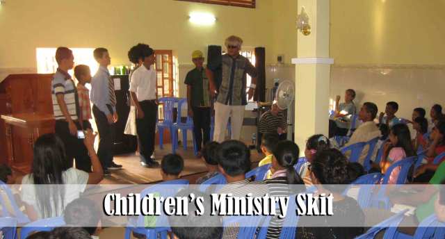 Several weeks ago we began having skits every other week in the Saturday Children’s Ministry. Though the skits are only about 10 minutes long, they add an exciting new dimension to the service. Each skit features a “grandpa” who is tempted to do wrong. This past week he decided to skip church to go and exercise with his friends. Much to his dismay the church soul-winners, while on their way to church, just “happened” to be walking past the park where he was exercising… he tried to no avail to hide but the pastor saw him and confronted him… the skit always ends up with grandpa “crying” (which is a huge hit with the children). He then repents and gets right. Jason and Jeremy are both part of the skit ministry. Bro. Bounna is doing a fantastic job leading this new ministry.