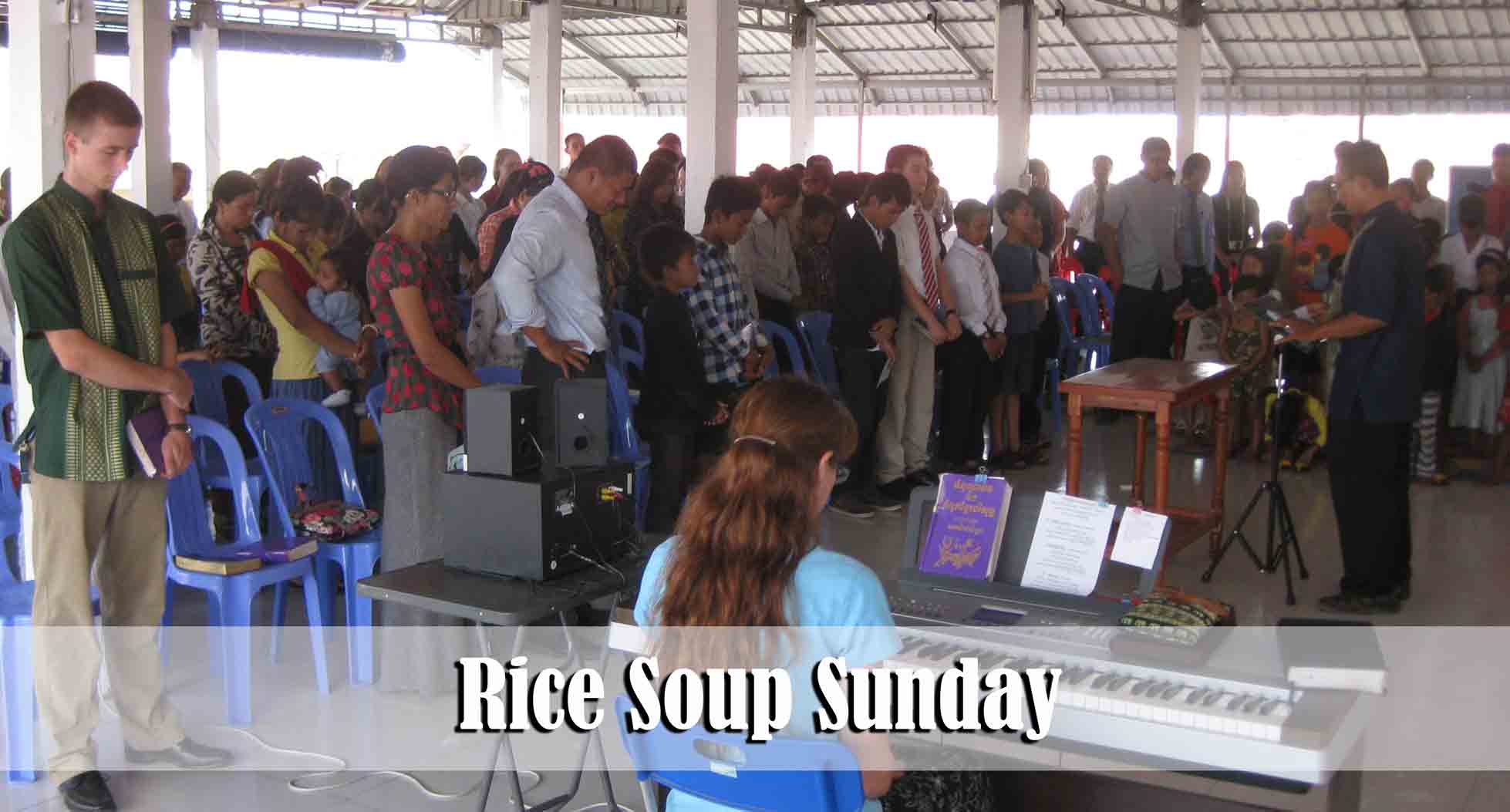 We recently had a combined service and Pot Luck. We try to do this every six weeks. It is a special time for a few of the believers from our various village ministries to have the opportunity to join the services in Phnom Penh. It is important for them to see and feel that they are not the only ones who believe in Jesus. They (from the villages) are encouraged by the large crowd, the singing, the testimonies, and the time of fellowship afterwards. We (from the city) are all encouraged by their boldness for the Lord. It is often much more difficult to live for the Lord in the village than it is in the big city. This month everyone brought their own version of Rice Soup and we enjoyed a special meal after the evening service.