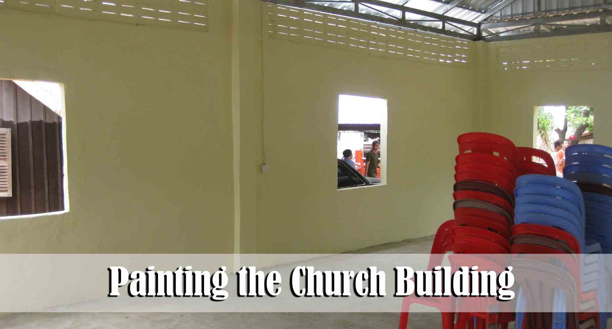 About 20 or so of the men from Phnom Penh traveled to the village church in Anlong Tnout village last week to paint the new church building. We had a wonderful time working together and the building looks much better now that it has a few coats of paint on it. Point of interest: They do not seem to sell primer here in Cambodia so we were painting right on the bare cement walls. It took about 5 coats ! The village congregation will now begin working on raising money to purchase windows and doors for the building. Lord willing the money will be raised within the next few months and the building can be completed.